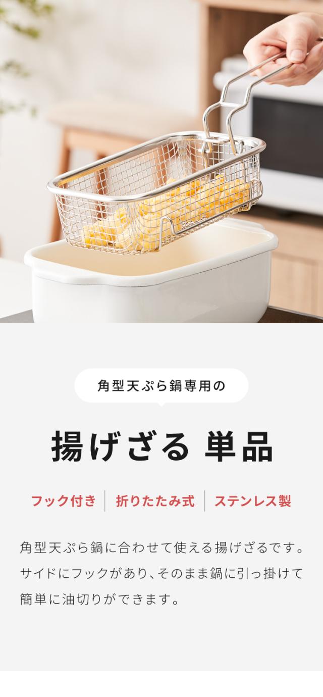 富士ホーロー 角型天ぷら鍋専用 フライヤーバスケット 25年新型 油切り 四角い揚げざる 揚げかご ポテトフライヤー スクエア 角型 OR-KFB