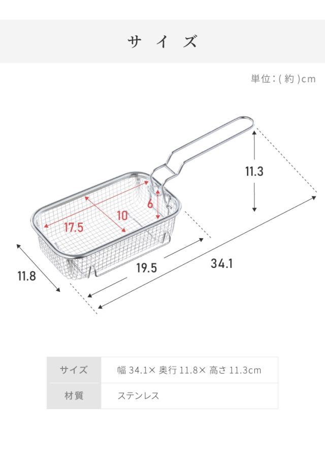 角型天ぷら鍋に合わせて使えるフライヤーバスケット。