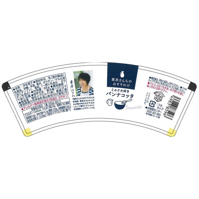 料理家・栗原はるみさんと、ミルクのおいしさを発信するデザート【料理家・栗原はるみさんと、ミルクのおいしさを発信するデザート】暮らしにミルクを欠かさない、人気料理家・栗原さんと共同開発したデザートです。【パンナコッタ】風味を豊かに楽しめる、やわらかくとろける食感が特長の、ミルクのおいしさにこだわったパンナコッタをシンプルにお届けします。【原材料】乳(国内製造)、乳製品、砂糖、洋酒、寒天、ゼラチン/ゲル化剤(加工デンプン)、香料、(一部に乳成分・ゼラチンを含む)