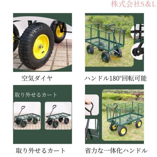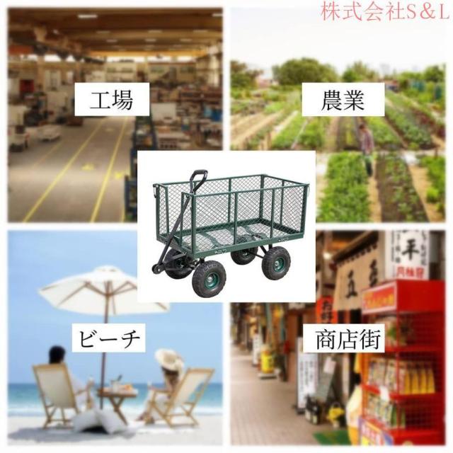 【用途が幅広い】工場、庭、農業用など作業用に最適です。空気ダイヤを採用し工場部品や土、木材などの運ぶは楽になす。作業用以外に買物、砂浜、ピクニックも適合しています。