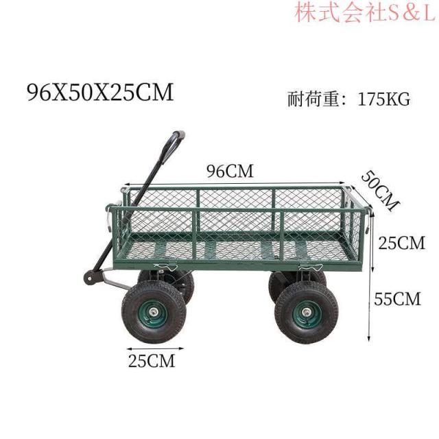 カゴ付き台車 スチールメッシュカート ガーデンカート キャンプカート リアカー 牽引台車 園芸 一体化ハンドル 防水防塵加工 取り外せるスチールメッシュ アウト