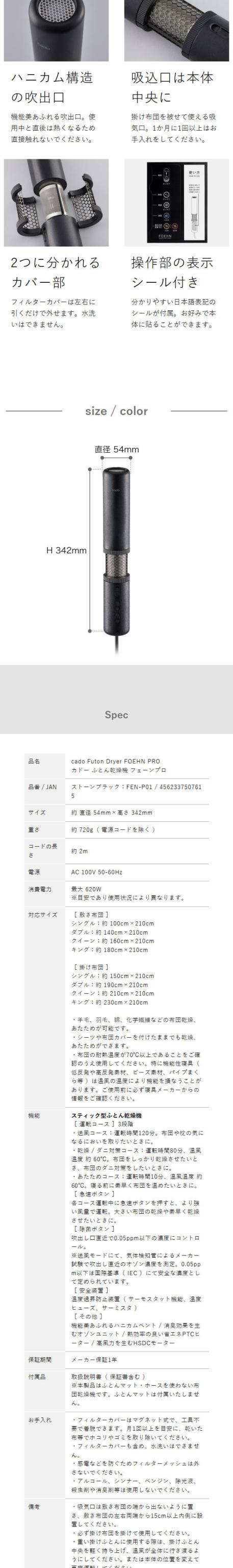 [ cado ふとん乾燥機 FOEHN PRO ]カドー 布団乾燥機 pro スティック型 布団ドライヤー 布団 ふとん ふとん乾燥 布団乾燥 消臭 除菌 ダニ対策 梅雨 コンパクト クイーン キング 軽量 スリム 除湿 花粉 トコジラミ ダニ ダニ退治 夏 お布団 FEN-P01