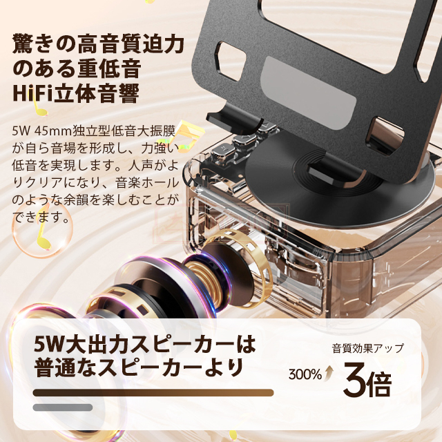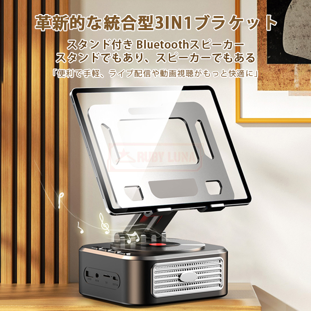 最安挑戦 冬新作 送料無料 新作 3IN1 スピーカー スタンド 折り畳みタブレット iPadスタンド スマホスタンド 多機能 360回転 Bluetooth スピーカー 高音質 重低音 Type C充電式 3000mAh 滑り止め 小型 持ち運びやすい 安定性抜群