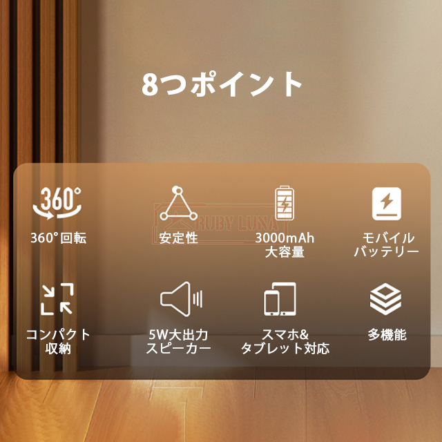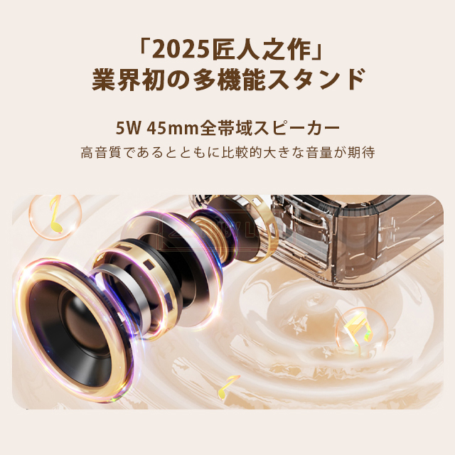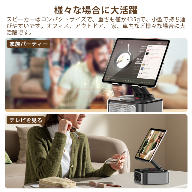 | 【3in1設計、業界初の多機能スタンド】 | ◆Bluetoothスピーカー+タブレットスタンド+モバイルバッテリー。 |