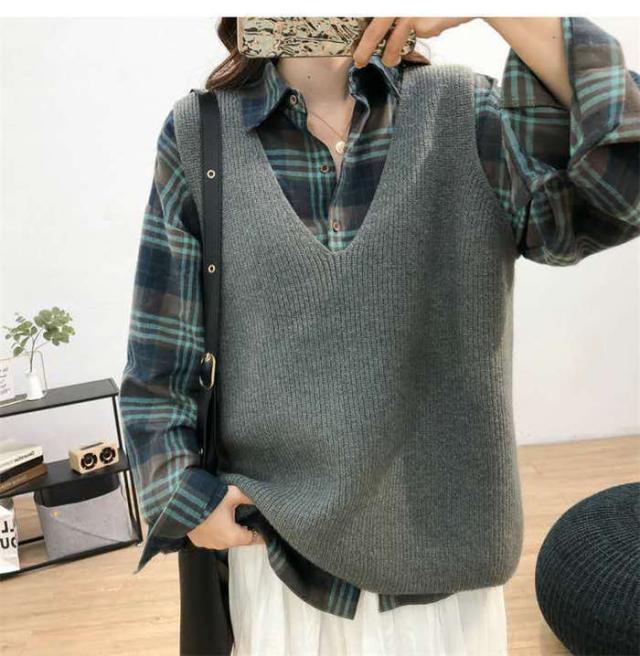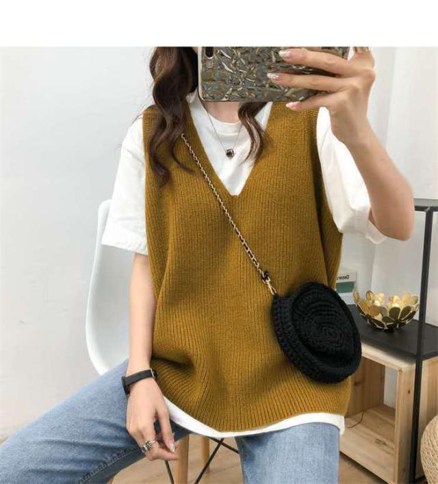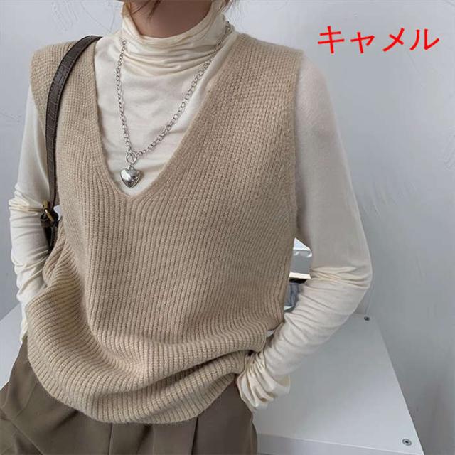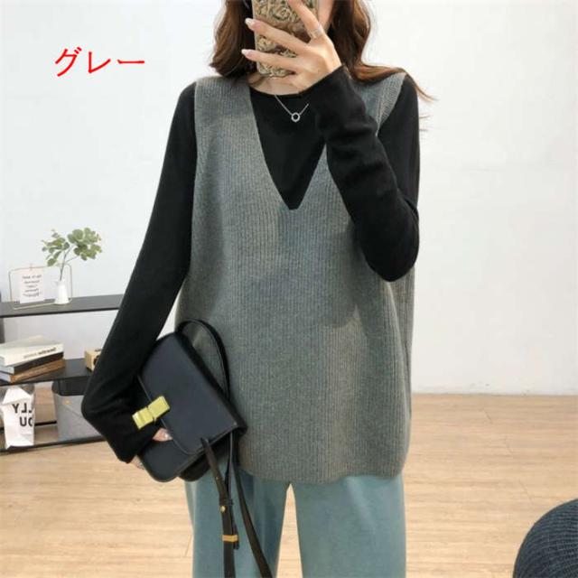 商品名:レディース ベスト ニットベスト 重ね着 無地 トップス レディース セーター Vネック ニット おしゃれ シンプル ゆったり カジュアル 可愛い ファッション 大きいサイズ
