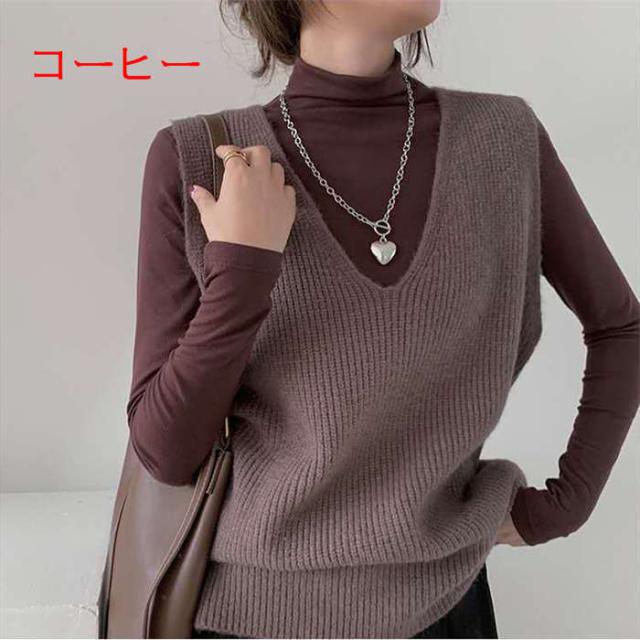 レディース ベスト ニットベスト 重ね着 無地 トップス レディース セーター Vネック ニット おしゃれ
