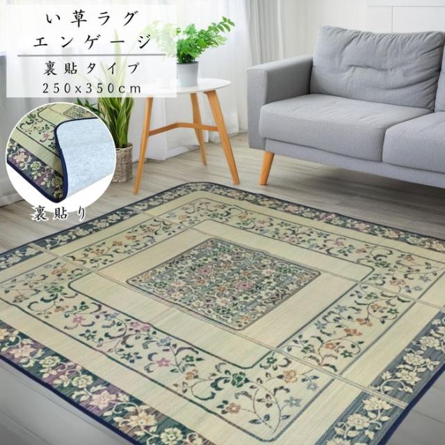 国産い草ラグ エンゲージ 裏貼りタイプ 豪華花柄 250x350cm 6畳用 コンパクト収納 日本製