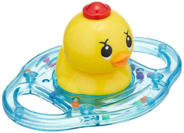 「アヒル隊長おふろでシャカシャカ」は、赤い帽子を被った、丸い目のアヒル隊長がポイントの赤ちゃん用玩具。