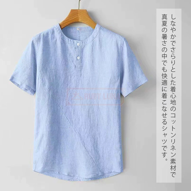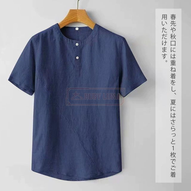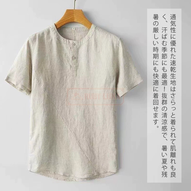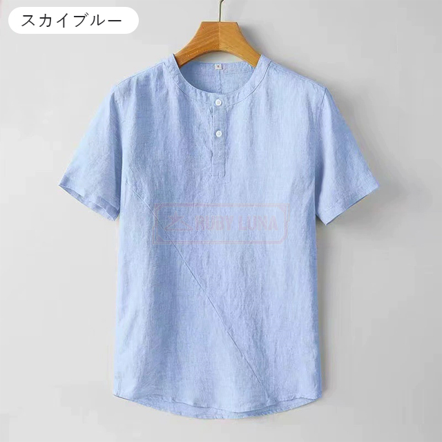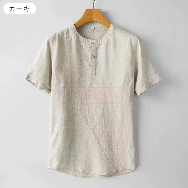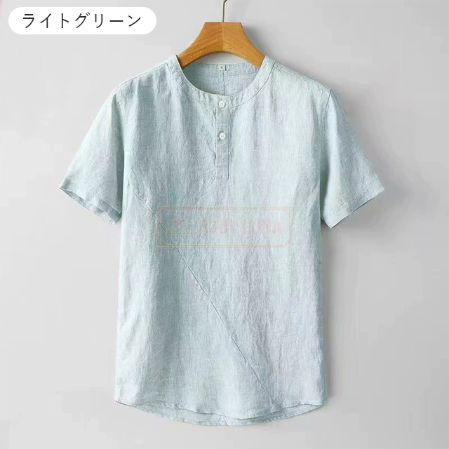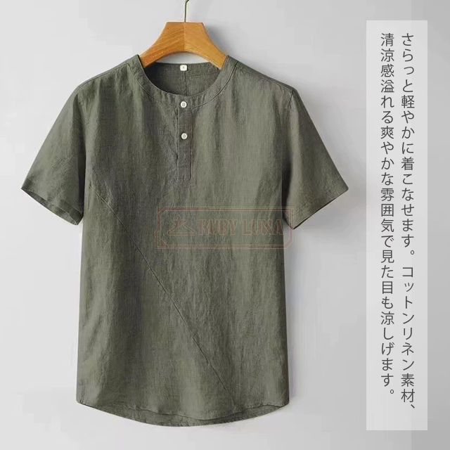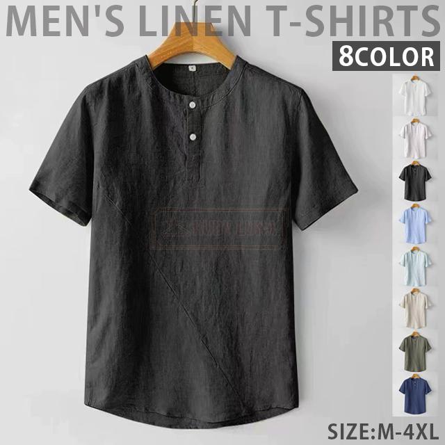 最安挑戦 春新作 送料無料 新作 リネンTシャツ メンズ Tシャツ 綿麻 薄手 涼しい 春夏 無地 トップス 半袖Tシャツ 綿麻 清涼感 ブルオーバーtシャツ ゆったり シンプル ヘンリーネック 前ボタン カジュアルTシャツ ナチュラル