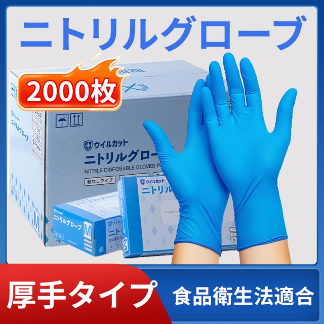 ニトリル ニトリルグローブ ウイルカット ニトリル手袋 2000枚 粉なし 使い切り 使い捨て 手ぶくろ グローブ ポリ塩化ビニール 衛生 介護 老人ホーム 病院 作業 レジ 園芸 美容 S/M/L 安全 清潔 手軽 簡単装着