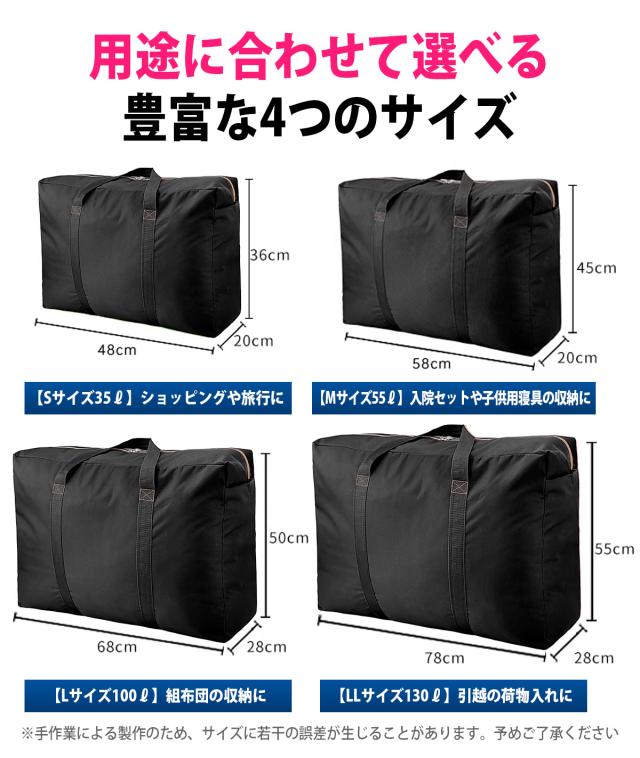布団収納袋 縦置き 丈夫 持ち手 クッション セミダブル 無印 収納袋 布団 衣類 大型 防水 大 アウトドア 収納ケース 収納ボックス おしゃれ 黒