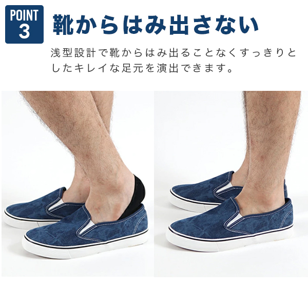 浅型設計で靴からはみ出ることなくすっきりとしたキレイな足元を演出できます。