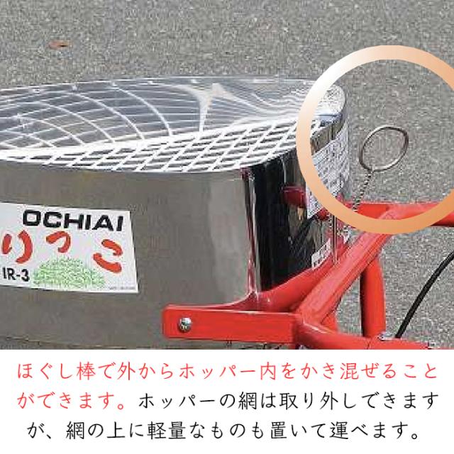 ほぐし棒で外からホッパー内をかき混ぜることができます。ホッパーの網は取り外しできますが、網の上に軽量なものも置いて運べます。