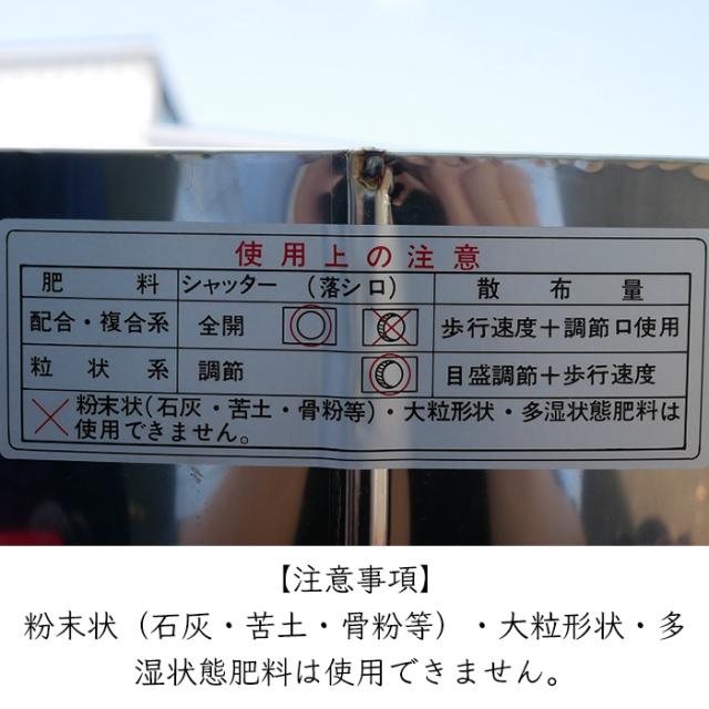 ・粉末状(石灰・苦土・骨粉等)・大粒形状・多湿状態肥料は使用できません。