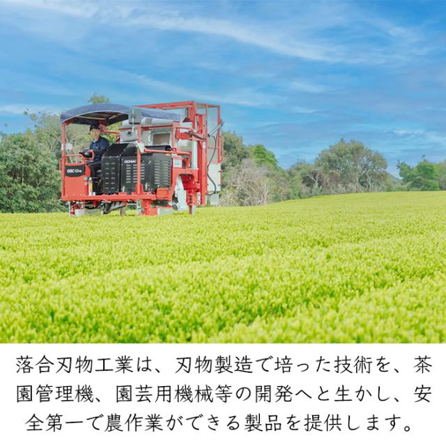 茶摘鋏の製作を開始して以来、乗用型茶葉摘採機をはじめ様々な農業機械を提供する『落合刃物工業』。刃物を製造する中で培った技術を、茶園管理機、園芸用機械等の開発へと生かし、安全第一で農作業が軽快にできる製品を提供しています。ヨーロッパやお茶の産地中国、台湾でも利用されている農機具メーカーです。