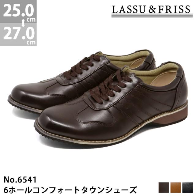コンフォートシューズ メンズ ウォーキングシューズ 防滑 6ホール 紳士靴 通勤 通学 軽量 汚れにくい 合成皮革 PUレザー 3cmヒール 25-27cm LASSU&FRISS ラスアンドフリス No.6541