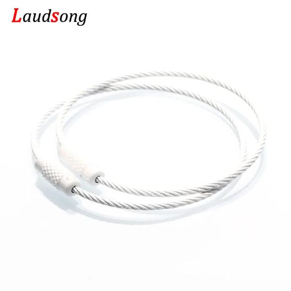 10 個カラフルなステンレス鋼ワイヤーキーホルダーケーブルループネジロックロープキーホルダーキーリングキーチェーンリングアウトドアツール