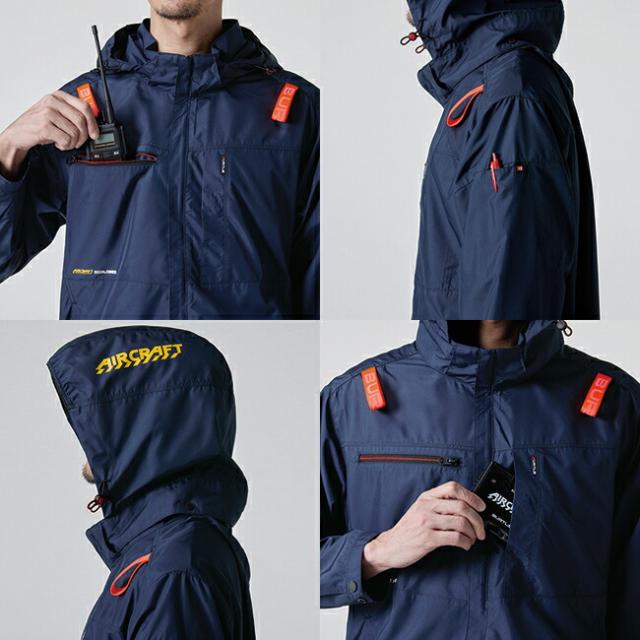 ★ヘルメット収納フード(着脱可能)、フックハンガー、背ランヤードホールを配備しフルハーネスに完全対応