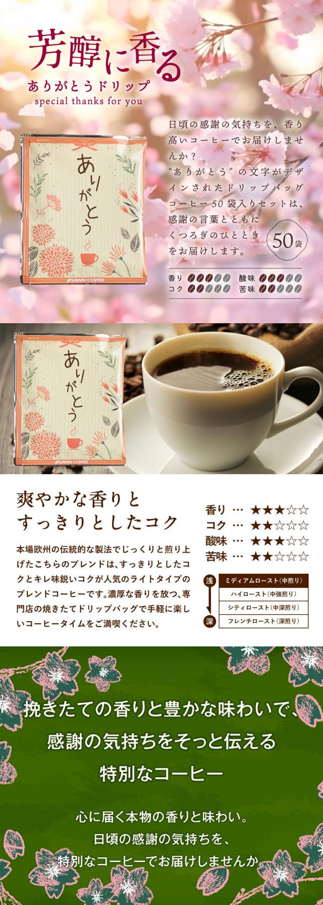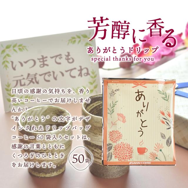 鮮度抜群 ドリップコーヒー ありがとう ドリップバッグ 50杯分 8g 50袋 珈琲 ドリップパック 小袋付き 送料無料 コーヒー 福袋 大容量 個包装 贈り物 澤井珈琲
