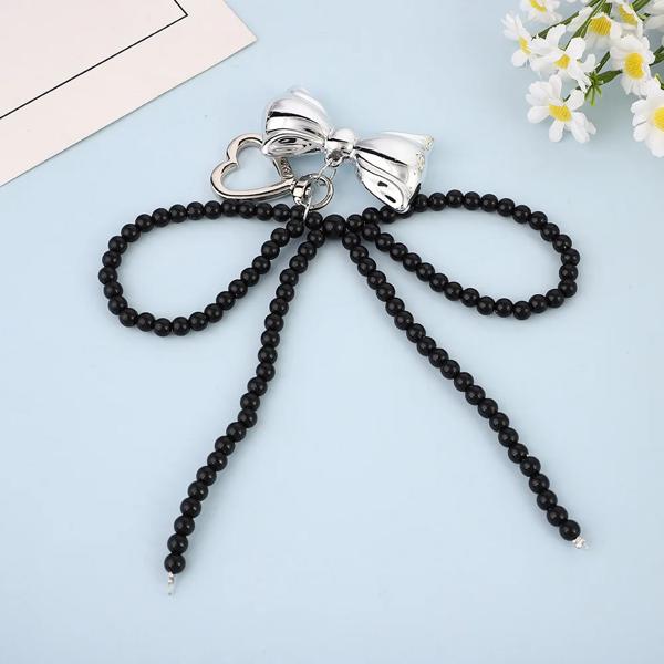 Yupsk エレガントな甘いビーズパールちょう結びキーホルダーハートペンダントキーリング Y2K 美的キーチェーンホルダーガールバッグアクセサリー