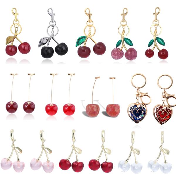 レッドチェリーバッグチャームキーホルダー絶妙なエレガントな小さなフレッシュチェリー Y2K キーリング女性のバックパック財布ペンダントアクセサリーギフト
