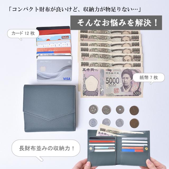 | 特徴 | 「二つ折り財布は小さいけれど、収納力が足りない…」そんなあなたに贈る、 コンパクトなのに大容量な牛革二つ折り財布です。 当店でしか買えない、オリジナル商品です! 「耐久性に優れた上質な牛革を使用」 外側は傷が目立ちにくく、上品な印象のシボ型押し牛革。 内側は滑らかな手触りで、カードの出し入れもスムーズな牛革。 「スキミング防止機能搭載」 目に見えないスリから情報を守るスキミング防止機能は現代社会のマスト機能です。 「トレンドのニュアンスカラー」 派手すぎず、地味すぎない、洗練された印象を与えます。 大人の女性の魅力を引き立てる、上品で落ち着いたカラーバリエーション全8色。 「長財布並みの収納力があります」 ・カードポケット×10 クレジットカードやポイントカードなどを、すっきりと収納。 必要なカードを、一目で確認できます。 ・フリーポケット×2 カードポケットの裏側に配置。 チケットやレシート、予備のカードなどの収納に便利。 ・紙幣入れ×2 紙幣の種類ごとに整理して収納可能。 レシートなどを分けて収納するのにも便利。 ・小銭入れ×1 マチがあるので小銭の出し入れがスムーズ。 外側にあり財布を開かずに小銭を取り出せます。 「こんな方におすすめ」 ・コンパクトな財布をお探しの方 ・カードやポイントカードをたくさん持ち歩きたい方 ・上質な本革財布を長く愛用したい方 ・トレンドのニュアンスカラーを取り入れたい方 手のひらに収まるサイズ感と、想像を超える収納力を両立。 トレンドのニュアンスカラーで、あなたの毎日を彩ります♪ 「革の表情について」 天然のキズやシワなどが入っている場合があり、これらは本革ならではの個体差によるものと 二つとない表情を魅せる革の個性であるため、風合いをお楽しみ頂けると幸いでございます。 ※ひどく目立つものを除いて、ある程度は革の個性としてそのまま出荷・発送を致します。 ※上記のような革の個性による返品・交換は原則お受け致しかねますので、予めご了承下さいませ。 「ラッピング承ります」200円 ラッピング「する」をご選択ください。 ※写真はラッピングイメージです。 ※カラー・デザインは男女兼用の物でお包み致します。 |