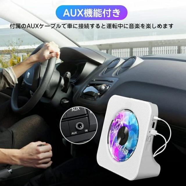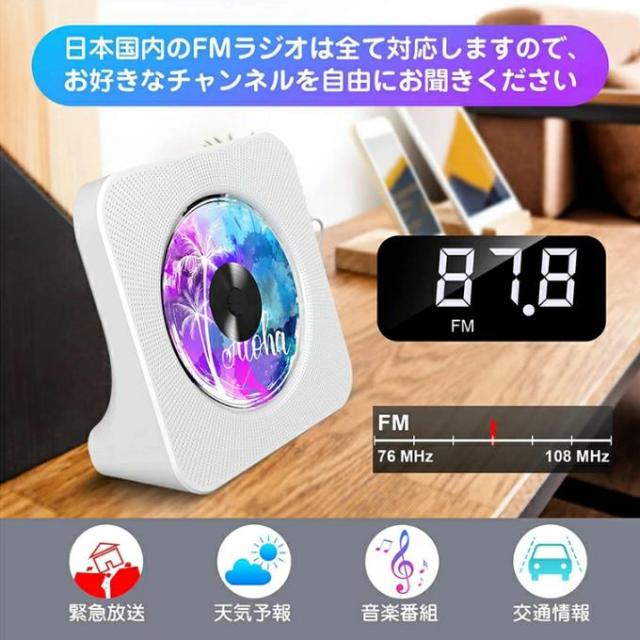 「2024年革新版の多機能CDプレーヤー」本卓上置き式CDプレーヤーはBluetoothを搭載しており、スマホなど他のbluetoothデバイスの音楽が再生できます。CD放送のほかに、本製品はAUX機能も搭載しており、付属のAUXケーブルでCDラジオと車など外部のオーディオデバイスに接続して音楽が再生できます。モバイルバッテリで給電可能とFMラジオ機能(周波数:76KHz-90MHz)付きで、緊急時に実用的な防災ラジオとしても使えます。また、本体またはリモコンの“MODE”でBluetoothモード/CDモード/FMモード/USBモード/AUXモードなど5つのモードを手軽に選択できます。CDプレーヤーとしてはもちろん、子供の語学学習や、成人のストレス解消にも役に立ちます。胎児教育、出産前教育、結婚祝い、新築祝い、開店祝いなどの素敵な贈り物としても良いです。