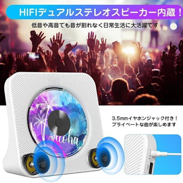 本CDプレーヤーは、立体的なミュージックが再生可能なHi-Fi高音質スピーカーを内蔵しており、低音や高音でも音が割れなく日常生活に大活躍です。更に、3.5mmイヤホンジャックも付いて、別売りの3.5mmイヤホンでプライベートな曲が楽しめます。ご注意:1、イヤホンをプレーヤーに接続する前に必ず音量を下げてください。2、イヤホンの接続の状態でスピーカーがOFFになります。Bluetooth搭載とあります、ワイヤレスイヤホンは対応です。