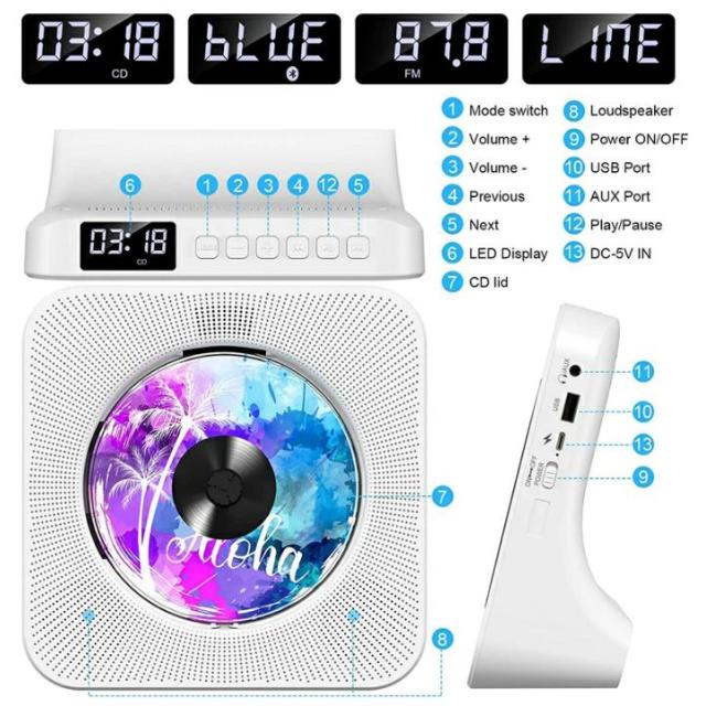 本製品はCD,CD-R,CD-RW,MP3,WMA,WAVなどのフォーマットに対応した幅広く使えるコンパクト音楽CDプレーヤーです(ご注意:ブルーレイディスクが再生できません、ご了承ください)。新バージョンのリモコンを付き、ボタンの押し心地がよく、手ごろなボタンのレイアウトガ気持ちいいです。6mの範囲内で楽々簡単に操作できます。 ご注意:ブルーレイディスクが再生できません、ご了承ください 。