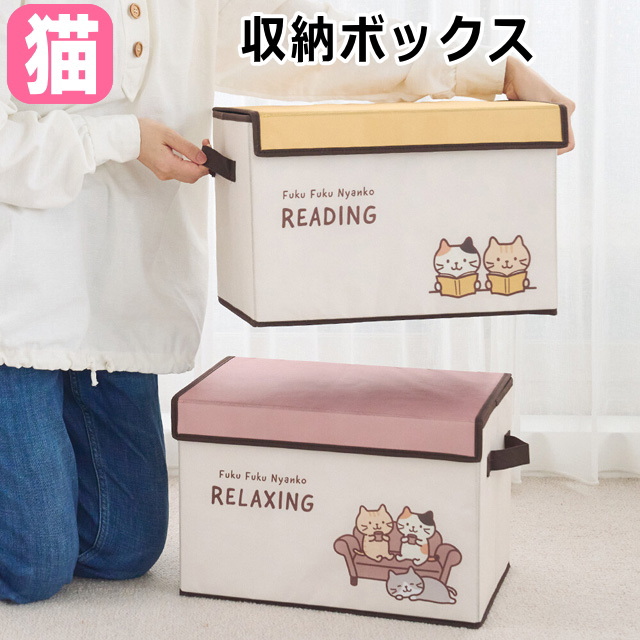 収納ボックス 不織布 折りたたみ 組み立て ふた付き 持ち手付き 軽量 便利 ストレージボックス カラーボックス おもちゃ箱 ネコ柄 ふくふくにゃんこ かわいい おしゃれ ギフト プレゼント 【 誕生日 】 母の日