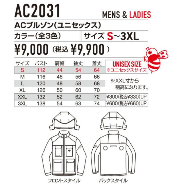 【2025年 ファン&バッテリーセット】】バートル BURTLE 空調ウェア エアークラフト AC2031 長袖 | 新作 新商品 新モデル おしゃれ かっこいい カジュアル メンズ レディース 空調 涼しい エアー クラフト 夏 クール 熱中症 対策 大きいサイズ