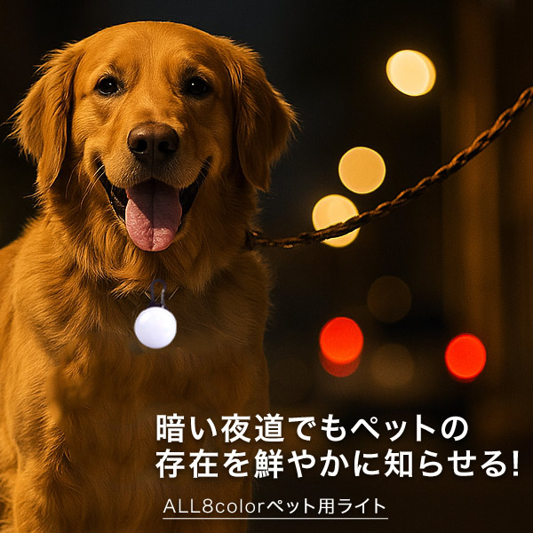 お散歩ライト ペット用ライト 光る ペンダント LED ペット お散歩 夜間 散歩 首輪用チャーム 安全 補助 犬 猫 ライト リードネックレス 小型犬 中型犬 大型犬 安心 首輪 ハーネス リード バッグ