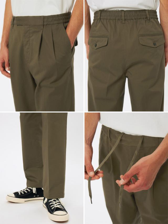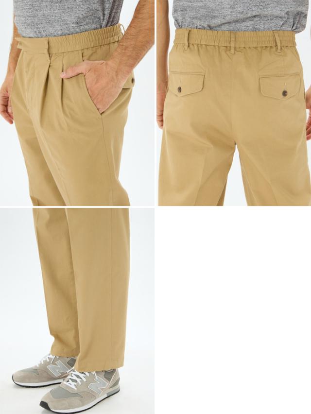 シルエットは、腿にゆとりを持たせたツータック仕様のテーパードシルエットになっているので、カジュアルからフォーマルまで幅広いシーンで着用できます。