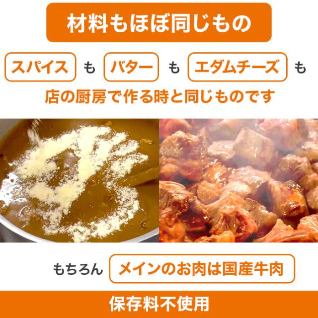 スパイスもバターもエダムチーズも店の厨房で作る時と同じものです。