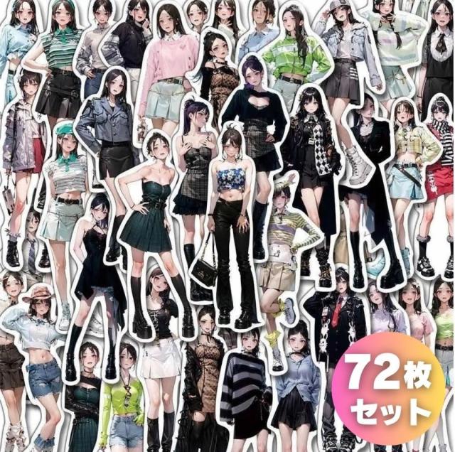 72枚セット 美少女 ガール イラスト PVC 防水加工 ステッカー シール
