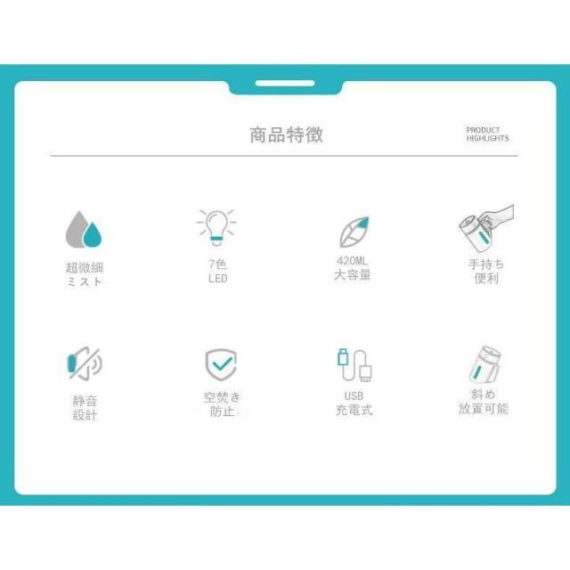 製品標準装備:加湿器一台、データケーブル一本、英語説明書