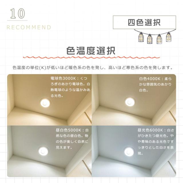 発光色:電球色3000K/白色4000K/昼白色5000K/昼光色6000K