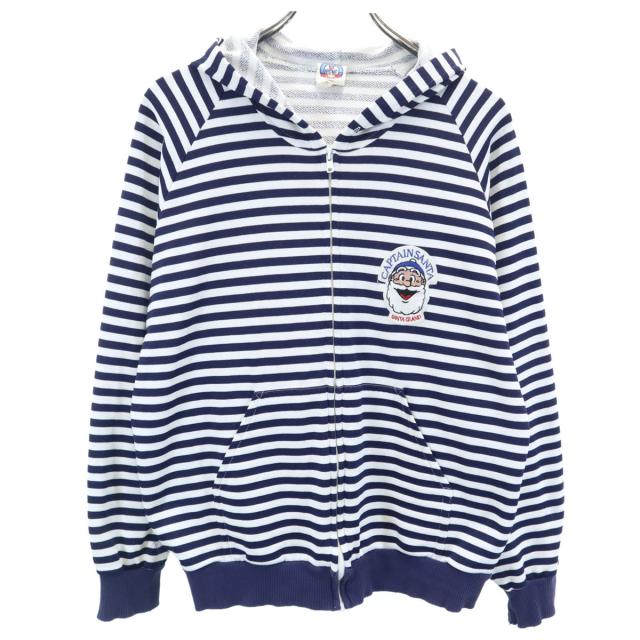 CAPTAIN SANTA キャプテンサンタ ボーダー柄 長袖 スウェット ジップパーカー M ホワイト レディース