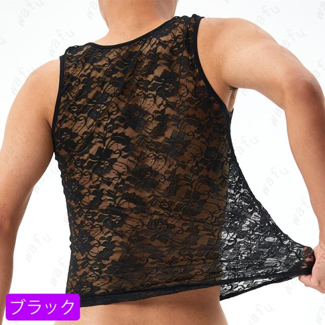 ◆2colors 透けて見えるメンズシースルータンクトップです。