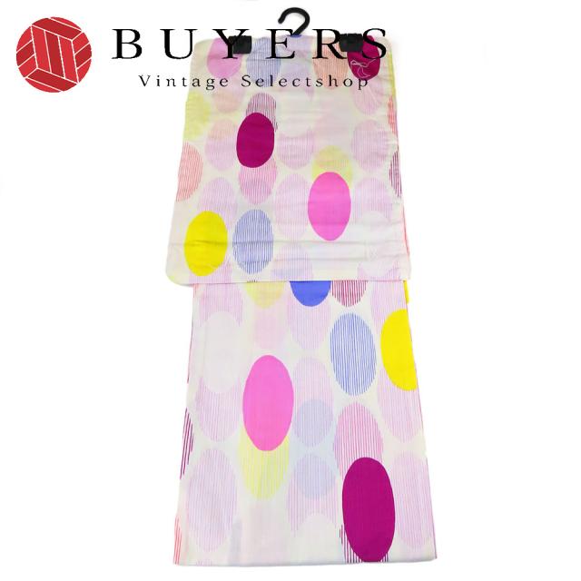 | 品名 | 中古 浴衣 未使用展示品 綿 白系 ピンク マルチカラー 水玉 ストライプ 大人可愛い レディース 女性 |