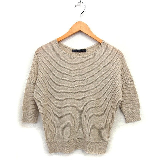 【中古】マルティニーク martinique ボートネック サマーニット セーター コットン混 リブ 透け感 七分袖 ベージュ