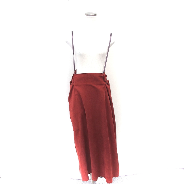 【中古】コムサブロンドオフ マタニティ サスペンダー スカート フレア ロング スウェード調 M〜L 赤 レッド /TT