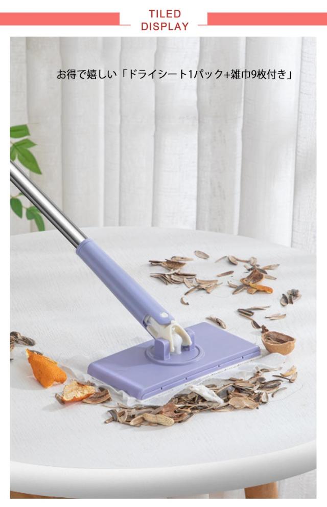| ・雑巾もシートも両方使える便利なフローリングワイパー ・お得で嬉しい「ドライシート1パック+雑巾9枚付き」 ・ハンドルを引っ張る/押すだけで、ワンタッチで取付け可能です。 ・狭い隙間でもスッと入るので、手の届かない場所もラクに拭き掃除できます。 | |