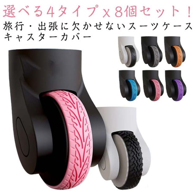 | 選べる4タイプx8個セット!旅行・出張に欠かせないスーツケースキャスターカバー キャスターの汚れと衝撃を防止してくれるシリコン素材のカバー。 キャリーケースを運ぶ際のタイヤ音も軽減されます! 玄関でカバーを外せば、部屋や床を汚さずに保管できます◎ 貼るだけの簡単装着です。カット可能で様々な車輪に適用! | |