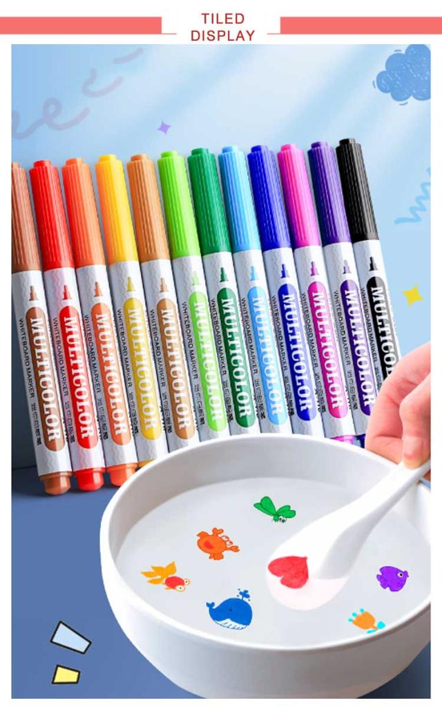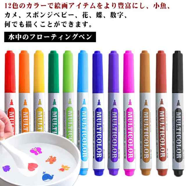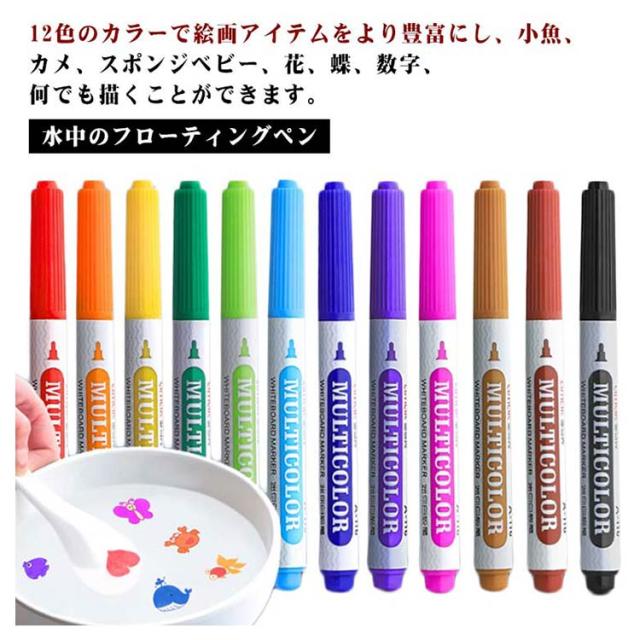12色あり!水中のフローティングペン 落書き水フローティングペン アート絵画水彩ペンシル 魔法の水絵ペン【12色】魔法の落書き描画ペンスプーン付 消去可能な水性マーカーペン 12色あり!水中のフローティングペン 水中でのDIY描画フローテ