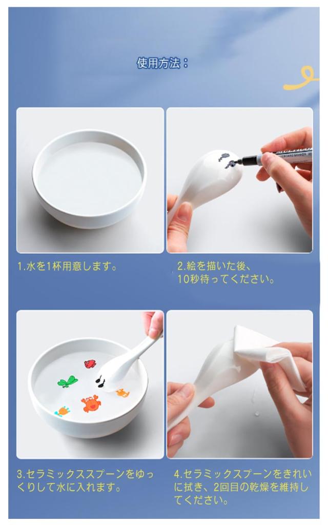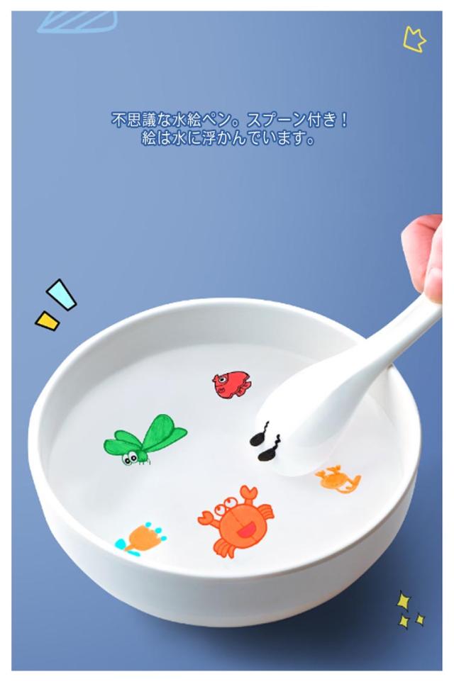 | 使用方法:1.水を1杯用意します。2.絵を描いた後、10秒待ってください。3.セラミックススプーンをゆっくりして水に入れます。4.セラミックスプーンをきれいに拭き、2回目の乾燥を維持してください。 信頼できる安全性!非毒、無酸、環境と体にやさしいです。手や服にインクを付いた場合、水で簡単に洗えます。 12色のカラーで絵画アイテムをより豊富にし、小魚、 カメ、スポンジベビー、花、蝶、数字、何でも描くことができます。 絵は水に溶けないようにし、動物、花、木などを描くことができます。 不思議な水絵ペン。スプーン付き!絵は水に浮かんでいます。 | |