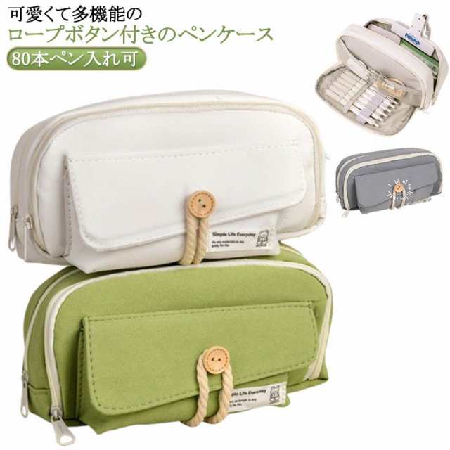 大容量 ボタン付き ペンケース 可愛い シンプル 女の子 80本ペン入れ可 おしゃれ ペンケース 韓国風 コットンロープボタン 大容量 高校生 ふで箱 ペンホルダー 中学生 ふでばこ 小学生 男の子 多機能 収納袋 文房具 化粧品入れ 軽量 入学祝い