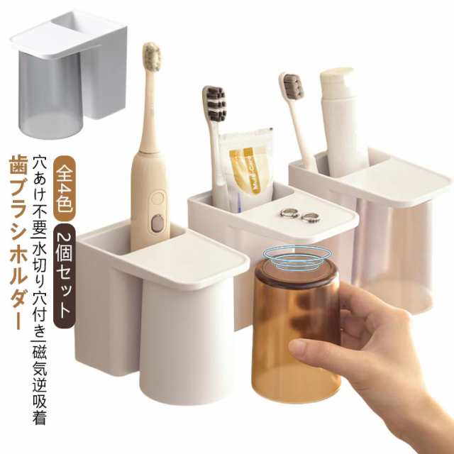 | 穴あけ不要|水切り穴付き|磁気逆吸着 歯ブラシホルダー 全4色 2個セット 歯ブラシやタンブラー、シェーバーなどの歯磨きグッズをまとめて収納できる歯ブラシスタンドです。 ★【耐久性が高い素材を採用】 良質PP素材を採用し、作りはしっかりしていて軽く環境に優しく異臭がなく、安全に使用できます。 耐久性が高いプラスチックでコップの中の表面にコーティング処理がされていて掛ける時早く水気が流れ落ちる。 ★【取り付け簡単】 付属のフック付き粘着テープで固定します。 穴不要、工具不要、ステンレス、塗装、大理石、ガラス各種滑らかな表面に貼り付けられます。 ★【逆に掛けて水垢が付かない】 吊り下げ式マグネットでコップ収納します。取り外し便利で、コップの入口が底を向けて水気がすぐ流れ落ちる!早く乾燥できてサラサラ衛生的! 底面にはスリットが入っているので水はけが良く、衛生的にお使いいただけます。 ★【水切りがよい】 歯磨きコップ 取り外し便利なマグネット式コップ、防塵、乾燥、細菌を防ぐ。歯ブラシコップの濡れが雑菌の繁殖につながることを悩みません!場所を取らずに洗面所すっきり収納できる。 取り付ける手順詳細 1個入りタイプ: 1.雑巾で壁をきれいにし、壁をきれいに保つ 2.粘着保護フィルムをはがします。 3.矢印の方向に合わせて上に貼り付けてください。 4.余分な空気を取り除き、取り付けた 24時間後に使用してください。 *ご注意 ■磁性部の保護膜に注意し、剥がさないでください。 | |