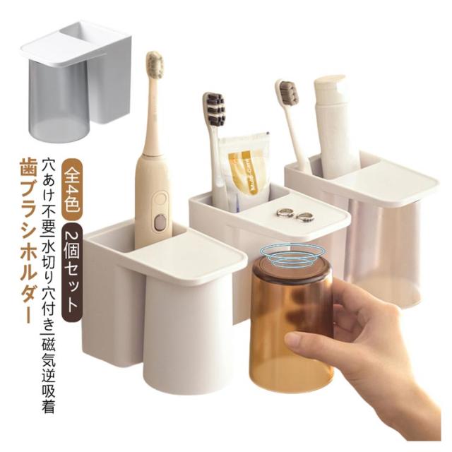収納 吸盤 コップスタンド 吊り下げ 歯ブラシホルダー 歯ブラシスタンド 水垢防止 内蔵 白 2個セット 歯ブラシたて 歯磨きコップ はぶらしたて 洗面所 マグネット 吸盤カップ スタンド 壁掛け 防塵衛生 2個セット ホワイト グレー おしゃれ