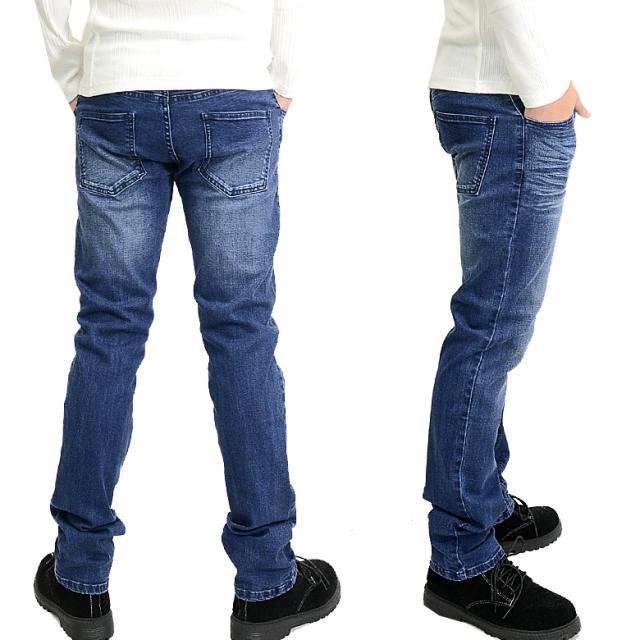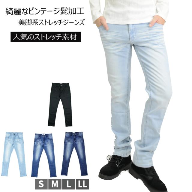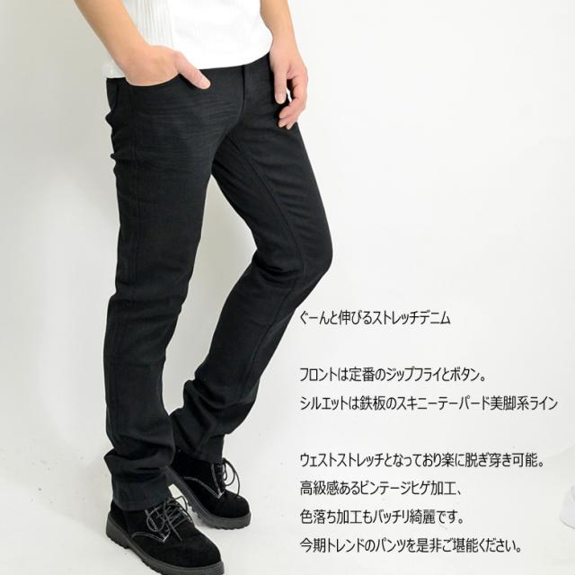 髭加工デザイン/美脚/腰パン/ストレッチデニム/スリム/